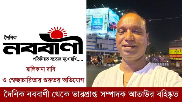 রাজধানী থেকে প্রকাশিত ‘দৈনিক নববাণী’ পত্রিকার ভারপ্রাপ্ত সম্পাদকের পদ থেকে বিতর্কিত কর্মকাণ্ড, নীতিবহির্ভূত আচরণ এবং চরম স্বেচ্ছাচারিতার দায়ে মোঃ আতাউর রহমান-কে অব্যাহতি দেওয়া হয়েছে। আজ ৪ মার্চ, ২০২৬ তারিখে পত্রিকার প্রকাশক ও সম্পাদক এ. এন. এম সলিমুল্লাহ সরকার স্বাক্ষরিত এক পত্রে এই সিদ্ধান্ত জানানো হয়।