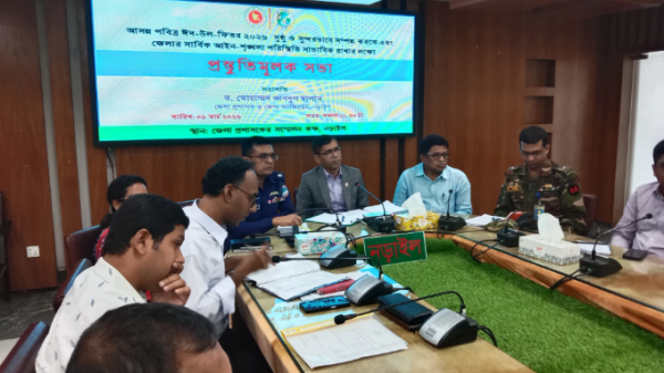 পবিত্র ঈদুল ফিতর সুষ্ঠু ও সুন্দরভাবে সম্পন্ন করতে এবং জেলার সার্বিক আইন-শৃঙ্খলা পরিস্থিতি স্বাভাবিক রাখার লক্ষ্যে নড়াইলে জেলা প্রশাসনের পক্ষ থেকে প্রস্তুতিমূলক সভা অনুষ্ঠিত হয়েছে। আজ দুপুরে জেলা প্রশাসকের সম্মেলন কক্ষে এ সভা অনুষ্ঠিত হয়। সভায় সভাপতিত্ব করেন নড়াইল জেলা প্রশাসক ড. মোহাম্মদ আবদুল ছালাম।