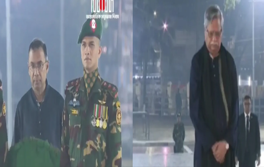 নিজস্ব প্রতিবেদক: ত্রয়োদশ সংসদ নির্বাচনে জিতে রাষ্ট্র পরিচালনার পর এবারই প্রথম একুশের প্রথম প্রহরে শহীদ মিনারে শ্রদ্ধা জানালেন বিএনপি চেয়ারম্যান তারেক রহমান। স্ত্রী জোবায়দা রহমান ও মেয়ে জাইমা রহমানকে সঙ্গে নিয়ে